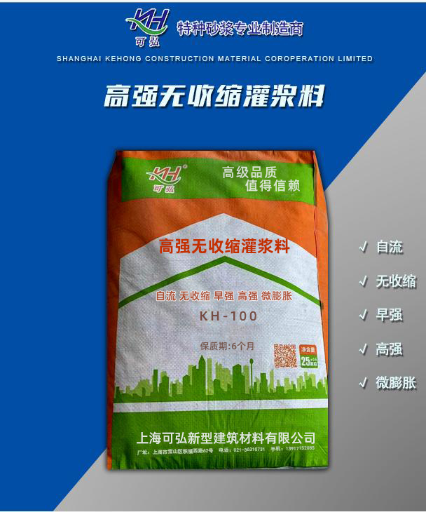 KH-100高強(qiáng)無收縮灌漿料,以特種水泥作為結(jié)合劑,特選高強(qiáng)度材料為骨料,輔以高流態(tài),微膨脹,防離析等物質(zhì)配制而成.具有良好的流動(dòng)性,微膨脹性,早強(qiáng),高強(qiáng)性和抗油滲性.系列產(chǎn)品綜合性能優(yōu)越,應(yīng)用范圍廣泛,能夠滿足各類灌漿工程施工需要,是冶金,電力,石化,化工,輕工等綜合行業(yè)的機(jī)械設(shè)備,地腳螺栓,廠房鋼結(jié)構(gòu)安裝工程,補(bǔ)強(qiáng)加固工程以及道路、橋梁搶修工程的理想材料.在施工方面具有質(zhì)量可靠,降低成本,縮短工期和使用方便等優(yōu)點(diǎn).
